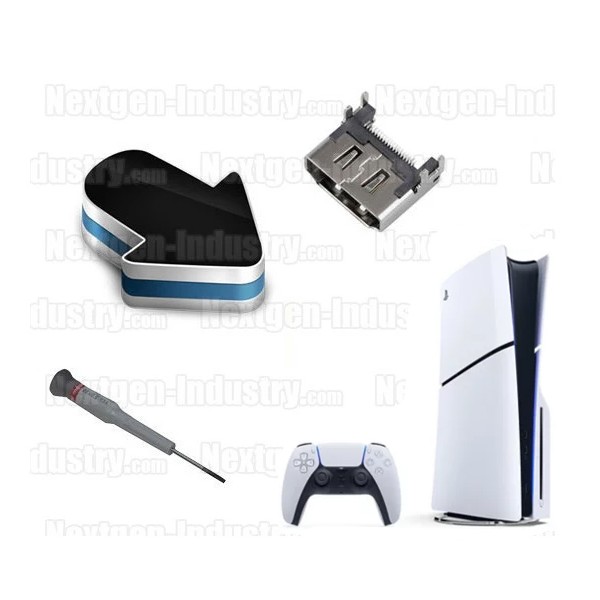 Nextgen-Industry vous propose un forfait réparation de la prise HDMI endommagée de votre console Ps5, Ps5 Slim ou Ps5 Pro.